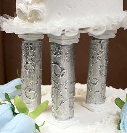 - Elegant Embroidered Silver Wrapped cake Pillar Covers by Wilton-4 pcs.