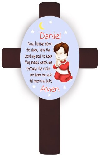Wedding Favor - Bridal Shower Gift - Baby Shower Keepsake: Wish your favorite little one blessings for a good night?TMs sleep with our Personalized Boy`s Prayer Cross. This wooden cross features a sweet little boy with brown hair with hands folded and eyes closed, ready to recite his bedtime prayers. Choose from two familiar prayers and personalize the wall cross with the child?TMs name for an added special touch. Cross measures 11 x 7 x 3 4. Prayer: Now I lay me down to sleep, I pray the Lord my soul to keep. May angels watch me through the night and keep me safe till morning light.