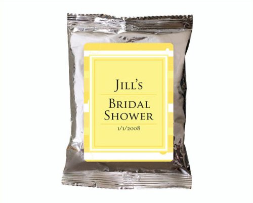 Wedding Favor - Bridal Shower Gift - Baby Shower Keepsake: This frothy, iced cappuccino drink is sure to be a rich and refreshing guest pleaser. The single serving pouches are sealed in elegant silver pouches which can be personalized with your names and event date along with your choice of one of our premium designs from our extensive design library. You are sure to find a design that perfectly complements your event theme and style. Package Contents: single serving 1 oz package of cappuccino powder Package Size: 4 wide x 6.5 tall Instructions: Just add milk or water and pour over ice. Note: Tag or Sticker does not come attached to item.