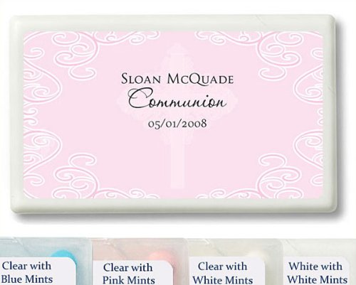 Wedding Favor - Bridal Shower Gift - Baby Shower Keepsake: This premium, molded plastic credit card sized container is small enough to be carried in any pocket or purse. These refreshing mints are a great value and fun gift for your guests. The containers are cleverly designed with a corner lid that flips open to provide access to the mints.Further personalize your gifts with your names and event date along with your choice of one of our premium designs from our extensive design library. You are sure to find a design that perfectly complements your event theme and style. Measurements: 3L X 1 4W X 2H Flavor: Cool Peppermint. Note: Tag or Sticker does not come attached to item.