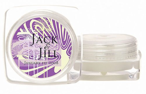 Your guests will love these fun, practical, generously sized lip balm tubs. The tubs are filled with a premium lip balm with SPF 15 protection and a light vanilla scent.The 1.5 round screw-on top fits securely on the base. The soothing balms are composed of Bees Wax and other premium ingredients.These favors can be further personalized with your names and event date along with your choice of one of our premium designs from our extensive design library. You are sure to find a design that perfectly complements your event theme and style. 1.5 round labels. Measurements: 1.75 x 1.75 Square Base, X 0.875 TallScent: VanillaWeight: 1.1 ounces each. Note: Tag or Sticker does not come attached to item. ... This unique & elegant item is part of our exclusive Wedding Favor and Bridal - Baby Shower collection. They make for a great and unique gift for your wedding reception, bridal shower, bay shower or any other special event.