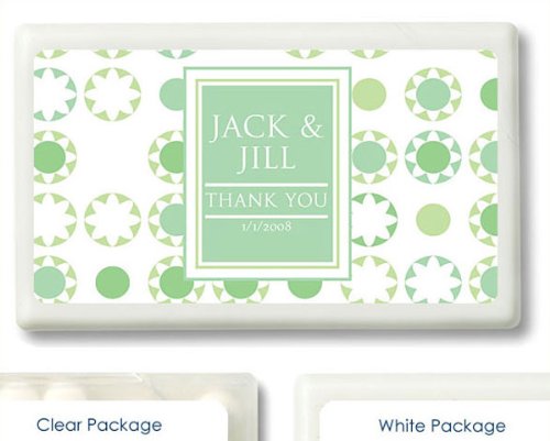 This premium, molded plastic credit card sized container is small enough to be carried in any pocket or purse. These refreshing mints are a great value and fun gift for your guests. The containers are cleverly designed with a corner lid that flips open to provide access to the mints.Further personalize your gifts with your names and event date along with your choice of one of our premium designs from our extensive design library. You are sure to find a design that perfectly complements your event theme and style. Measurements: 3L X 1 4W X 2H Flavor: Cool Peppermint. Note: Tag or Sticker does not come attached to item. ... This unique & elegant item is part of our exclusive Wedding Favor and Bridal - Baby Shower collection. They make for a great and unique gift for your wedding reception, bridal shower, bay shower or any other special event.