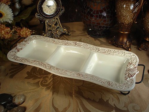 You can never go wrong with traditional style. Set in neutral ivory tones and baroque accents, you can be rest assured that your guests` will want to use this wonderful 3 section dish as often as possible. Works well for breakfast, lunch and dinner?this line has established itself as a D`Lusso Home Collection favorite. Measures 18 inches long by 7 inches wide. ... This unique & elegant item is part of our exclusive Wedding Favor and Bridal - Baby Shower collection. They make for a great and unique gift for your wedding reception, bridal shower, bay shower or any other special event.