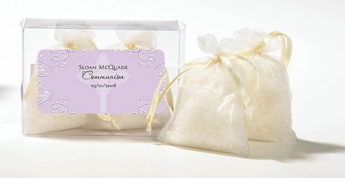 Wedding Favor - Bridal Shower Gift - Baby Shower Keepsake: Our unique bath salts are made with the finest ingredients in order to cleanse your skin and provide it with a natural, healthy glow. Our salts are infused with a fresh linen scent to create a refreshing and relaxing environment. Our bath salts packaged in two beautiful organza bags with matching drawstrings. The bags are packaged in a clear PVC box to showcase the product. Elegant Black and White fleur-de-lis design with matching label personalization The personalization of your names and event date will be on a glossy label and applied to the top of the box. Scent : Fresh Linen Contents: 2, 45 gram bags of bath salts Size each bag: 2 L x 1 W x 2 3 4 H. Note: Tag or Sticker does not come attached to item.