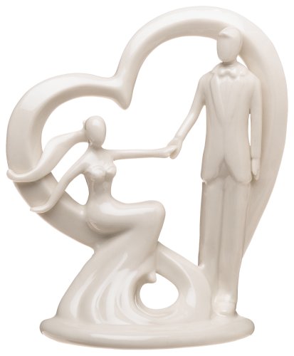 The Bride reaches for her Groom as her veil flutters in the breeze. Embracing the ultimate symbol for love, the heart becomes the backdrop for this discriminating contemporary cake top. Designed to add glamour to any cake. Glazed porcelain.