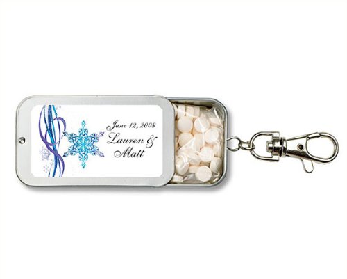 Wedding Favor - Bridal Shower Gift - Baby Shower Keepsake: This beautifully designed keychain mint tin makes the perfect favor ?" these flavorful mints are sure to leave your guests with fond memories of your event. The refreshing mints are packaged in a brushed tin container with a fun and practical key chain attachment along with a tin top that slides open to provide ready access to the mints.Further personalize your gifts with your names and event date along with your choice of one of our premium designs from our extensive design library. You are sure to find a design that perfectly complements your event theme and style. Measurements: 2.75 L x 1.5 W x 0.5 H Flavor: Cool Peppermint, Cinnamint, Refreshing Green Tea. Note: Tag or Sticker does not come attached to item.