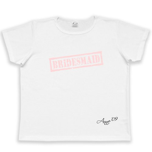 Wedding Favor - Bridal Shower Gift - Baby Shower Keepsake: Each member of the bridal party can be honored with their own personalized white tee, stamped with their official title across the front, fashioned in a pretty shade of pink. Available in a variety of sizes for all ages and shapes, our "stamped" tee includes name and date and is an ideal bridal party gift. Wear them for the rehearsal or even the bachelorette party. There's one for mom, too The shirts are made of 93% high performance poly and 7% easy-stretch spandex. Personalize it with Name and Year.