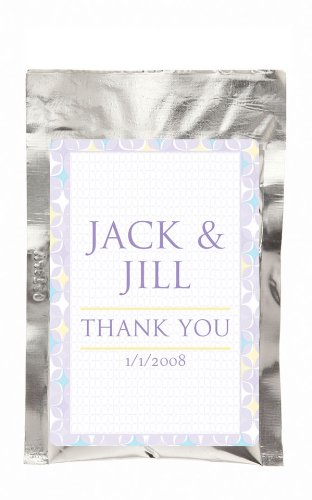 This delicious French Vanilla Cappuccino mix is sure to warm your guests hearts. Each package contains a single serving of flavored coffee mix in a beautiful silver package and makes one mug of creamy, flavorful cappuccino. Personalize the favors with your names and event date along with your choice of one of our premium designs from our extensive design library. You are sure to find a design that perfectly complements your event theme and style. Labels are 2 x 3.25. Instructions: Mix with 6 oz hot water Shelf Life: 12 months Measurements: 3 Wide x 5 Tall Weight: 1 oz. Note: Tag or Sticker does not come attached to item. ... This unique & elegant item is part of our exclusive Wedding Favor and Bridal - Baby Shower collection. They make for a great and unique gift for your wedding reception, bridal shower, bay shower or any other special event.