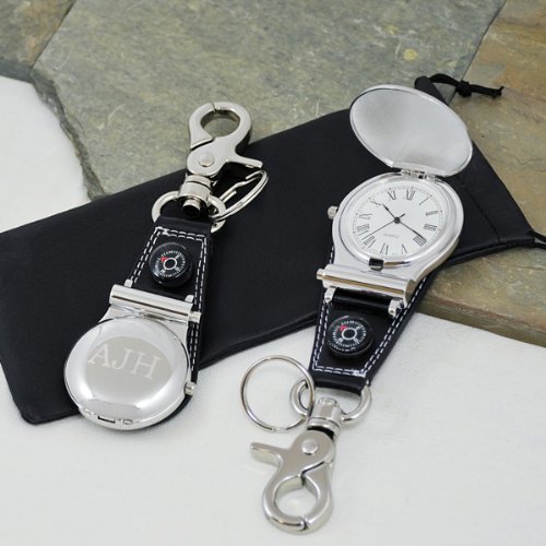 Bring in a touch of nostalgia with our Sports Watch with Compass. Before there was GPS there was the good old-fashioned compass, and this little unit is just the type of gadget that guys would love to have around. This classic sport watch features a compass on a black leather base, a belt clip and key ring making this gift truly unique. Includes a free black leatherette protective case. Details: Size: Measures 5 1 4 inches by 1 3 4 inches. Materials: Brushed nickel and leatherette settingEngraving Options: The Sports Watch with Compass may be engraved with up to three block initials or a single letterman style initial at No Additional Cost. ... This unique & elegant item is part of our exclusive Wedding Favor and Bridal - Baby Shower collection. They make for a great and unique gift for your wedding reception, bridal shower, bay shower or any other special event.
