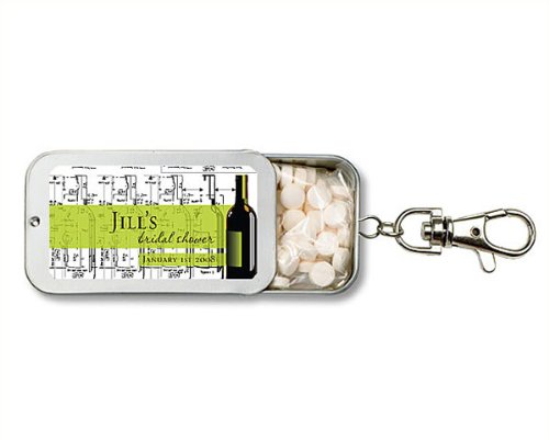The Detailed Description of Wedding Favors Green Wine Design Theme Personalized Key Chain Mint Tin Favors (Set of 24)