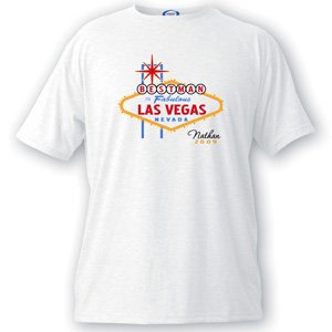 Wedding Favor - Bridal Shower Gift - Baby Shower Keepsake: Heading to Vegas for the bachelor party or for the big day? Tell the world how much fun you?TMre having in Sin City with our personalized Vegas bridal party tees. Great for during the trip or after, these white t-shirts bear the famous Las Vegas logo and can be personalized with name and year. Available in sizes M, L, XL, 2XL. The performance t-shirt is made of a light and durable micro-fiber and spun poly fabric for extra comfort and sturdiness. Choose from Groom, Usher, Groomsman, or Best Man and personalize with name of attendee and year.