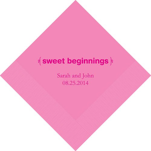 Beginnings are always an event to celebrate whether it is the start of a new life with your loved one or the birth of a child. Convey the message that your new beginning is something delightful and worth celebrating with this attractive design. Choose from a variety of colors. Napkins are 3 ply. Napkin Dimension - Beverage Size: Folded: 5" x 5" Unfolded: 10" x 10" Luncheon Size: Folded: 6 1 2" x 6 1 2" Unfolded: 13" x 13" ... This unique & elegant item is part of our exclusive Wedding Favor and Bridal - Baby Shower collection. They make for a great and unique gift for your wedding reception, bridal shower, bay shower or any other special event.