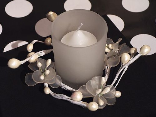 Wedding Favor - Bridal Shower Gift - Baby Shower Keepsake: A touch of elegance for your special day, our crystal candle holders are a perfect addition to any event. Your guests will be sure to decorate their homes with this unique handmade ring of delicate frosted white crystal flowers accented with pearls and a glass votive candle holder in the center and white votive candle. Finished in an elegant clear gift box with a white organza ribbon. Each favor measures 4 x 4 x 2 1 2.