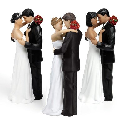 Bride and groom figurine wedding cake toppers are popular once again. This hand-painted resin cake top captures a special wedding day moment of intimacy with exquisite attention to detail.