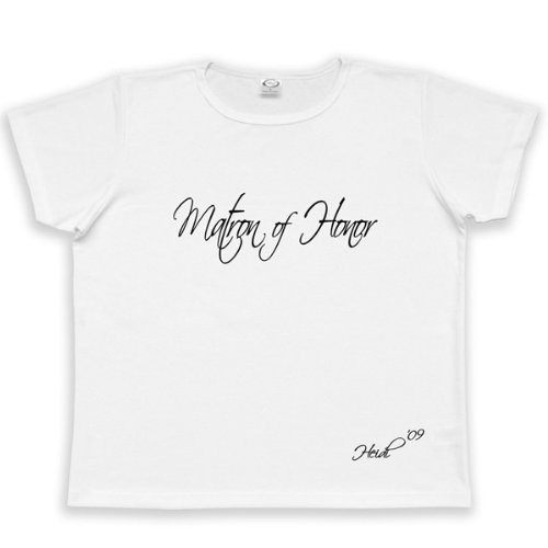 The Detailed Description of Baby Keepsake: Matron of Honor Personalized Women`s Script Series T-shirt - Girls XS