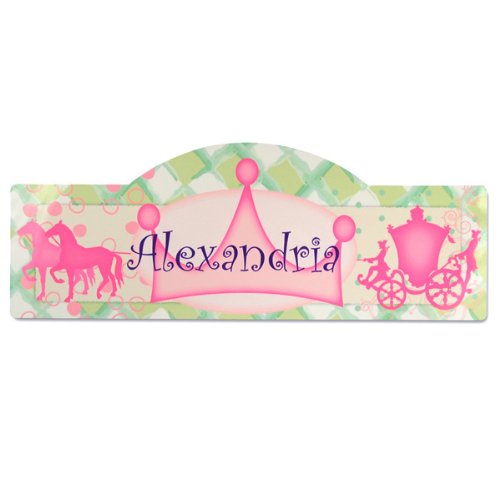 Wedding Favor - Bridal Shower Gift - Baby Shower Keepsake: Every little girl will feel like royalty with our Princess Kid's Sign decorating her room. Whether she hangs it on her door, above her bed or by a window, this beautifully decorated sign will certainly be a standout piece Fashioned in laminated wood, this room accent features a dainty pink, yellow and green design, equipped with a horse drawn carriage and tiara... every girl's dream come true Dreamy child's sign is refined with a high gloss finish, free personalization and an attachable hanger, making it as unique as every child receiving it. Details: Size: Measures 15 1 2" wide by 5 3 4 inches tall. Materials: Laminated Wood Personalization Options: The Princess Kid's Sign may be personalized with a child's first or last name max of 12 characters at No Additional Cost.