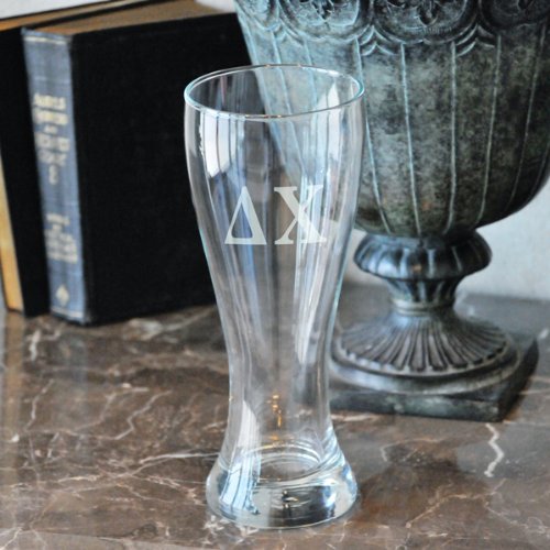 Have an amazing souvenir long after your Greek days are done with our Greek Pilsner Glass. Curvaceous and tapered, this glass holds a full 20 ounces and fits smoothly in your hand. The crystal clear glassware features free personalization for further classic elegance and exceptional personalization. It is a gift that will be cherished and used often. Details: Size: Measures 8 1 4" tall by 3 1 2 inches wide. Holds up to 20 ounces. Materials: Clear glass *Please Note: Hand blown glass may contain small bubbles. Engraving Options: The Pilsner Glass Set may be engraved with up to three Greek letters at No Additional Cost. ... This unique & elegant item is part of our exclusive Wedding Favor and Bridal - Baby Shower collection. They make for a great and unique gift for your wedding reception, bridal shower, bay shower or any other special event.