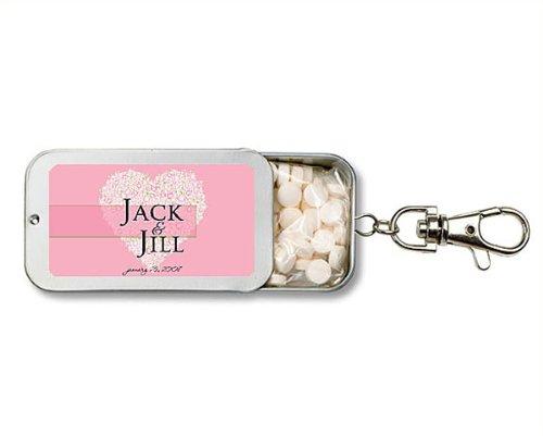 The Detailed Description of Wedding Favors Pink Floral Heart Design Personalized Key Chain Mint Tin Favors (Set of 24)