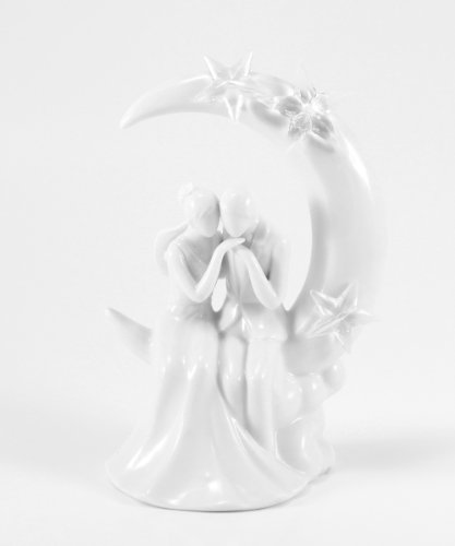 With a soft kiss on the hand, this silhouetted bride and groom are whisked away to the romantic dreamworld of the moon and stars. Glazed porcelain with acrylic prism stars.