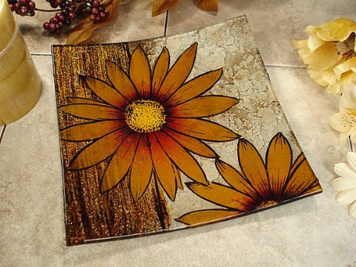 Wedding Favor - Bridal Shower Gift - Baby Shower Keepsake: Your guests will simply revel in the "experience" this murano design square sunflower deco bowl will bring them. Deep luxurious hand painted designs and simply enchanting colors make this an ideal favor for when you are looking to impress. Comes packaged in a delicate semi gloss ivory box. Another quality favor by D'Lusso Home Collections. Measures 7.5"L x 7.5"W Weight: 1.0 lbs