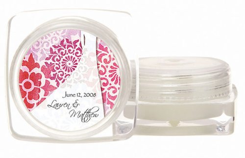 Wedding Favor - Bridal Shower Gift - Baby Shower Keepsake: Your guests will love these fun, practical, generously sized lip balm tubs. The tubs are filled with a premium lip balm with SPF 15 protection and a light vanilla scent.The 1.5 round screw-on top fits securely on the base. The soothing balms are composed of Bees Wax and other premium ingredients.These favors can be further personalized with your names and event date along with your choice of one of our premium designs from our extensive design library. You are sure to find a design that perfectly complements your event theme and style. 1.5 round labels. Measurements: 1.75 x 1.75 Square Base, X 0.875 TallScent: VanillaWeight: 1.1 ounces each. Note: Tag or Sticker does not come attached to item.