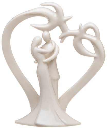 Swaying palm trees create a stylized heart and a romantic backdrop for this tender embrace. A perfect cake topper for a tropical wedding, this will add a unique charm to any cake. Glazed porcelain.