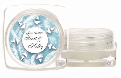 Wedding Favor - Bridal Shower Gift - Baby Shower Keepsake: Your guests will love these fun, practical, generously sized lip balm tubs. The tubs are filled with a premium lip balm with SPF 15 protection and a light vanilla scent.The 1.5 round screw-on top fits securely on the base. The soothing balms are composed of Bees Wax and other premium ingredients.These favors can be further personalized with your names and event date along with your choice of one of our premium designs from our extensive design library. You are sure to find a design that perfectly complements your event theme and style. 1.5 round labels. Measurements: 1.75 x 1.75 Square Base, X 0.875 TallScent: VanillaWeight: 1.1 ounces each. Note: Tag or Sticker does not come attached to item.