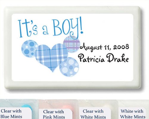 The Detailed Description of Baby Keepsake: Its a Boy Festive Design Personalized Mint Container Favors (Set of 24)