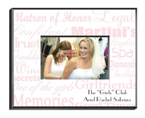 Wedding Favor - Bridal Shower Gift - Baby Shower Keepsake: Thank her for being part of your special day with this matron of honor picutre frame that says it all Fashioned in traditional black and white or pretty pink and white or one of our trendy color combinations with text that helps recall those special girl moments, our personalized matron of honor frame is an ideal gift for that important member of your bridal party and a perfect place for that cherished photo of the two of you. Frame measures 8 x 10 and holds a 4 x 6 picture. Be creative and personalize the two lines in the lower right hand corner especially for your maid of honor. Each line can be personalized with up 20 characters per line.