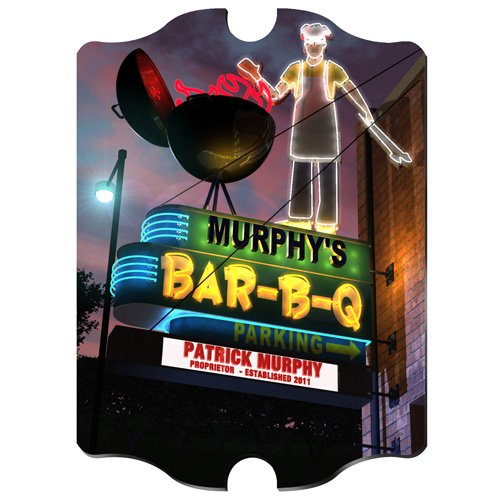 Wedding Favor - Bridal Shower Gift - Baby Shower Keepsake: Your master griller will love this personalized Bar-B-Q-themed sign, complete with vintage neon and his name in lights. Colorful and ideal for the den or the man cave, this clever personalized sign dubs him the barbecue king and is perfect for Father's Day, birthday, or any other special occasion. Measures 10 3 4" x 15 1 2" x 1 4". Personalize with first and last name and established year.