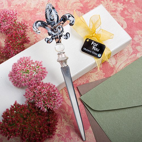The Detailed Description of Wedding Favors Murano Glass Collection fleur de lis letter openers