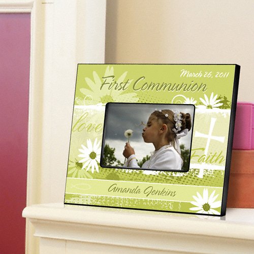 Wedding Favor - Bridal Shower Gift - Baby Shower Keepsake: Available in a wide variety of styles from classic to contemporary, these attractive personalized First Communion Frames are an ideal holder for that perfect photo and a lovely gift for that special boy or girl. Colorful and featuring a variety of fonts and designs, these frames include the child`s name and date of the event. Hang it on the bedroom wall or place it on the mantel for lasting memories of that special day in a child`s spiritual life Frame measures 8 x 10 and holds a 4 x 6 picture. Personalize with child`s name and First Communion date up to 20 characters per line.