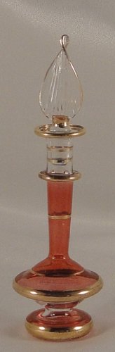 Direct Import from Egypt. ------------ Dating back to 30 B.C., these bottles still grace Pharaoh's tombs in the valley of the kings. Today these functional perfume bottles may be filled with scented oils, bath fragrances, or just represent a beautiful addition to any cherished collections. Egypt has a proud and continuing tradition of glass blowing. Each perfume bottle is a mouth blown masterpiece: hand-etched & hand-painted. Highlighted with 9K Gold, each piece is an incomparable, unique and one of a kind gift. ------------- We carry a wide selection of colors and sizes of these unique Egyptian Perfume Bottles. Treat yourself to this item or give it as a gift.