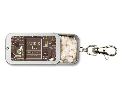 The Detailed Description of Wedding Favors Brown Wine Bar Theme Personalized Key Chain Mint Tin Favors (Set of 24)